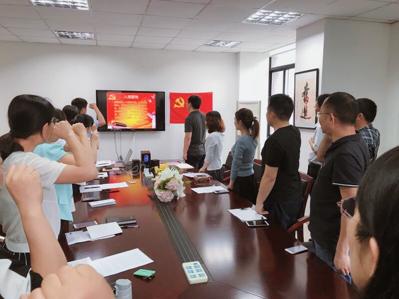 pp电子游戏平台官网直属党支部副书记袁亮带领全体党员面向党旗又一次宣读入党誓词。那一句句激昂的文字,是对党员同志灵魂的再一次洗涤,再一次激起当初入党时的坚定信念和炽热之情。