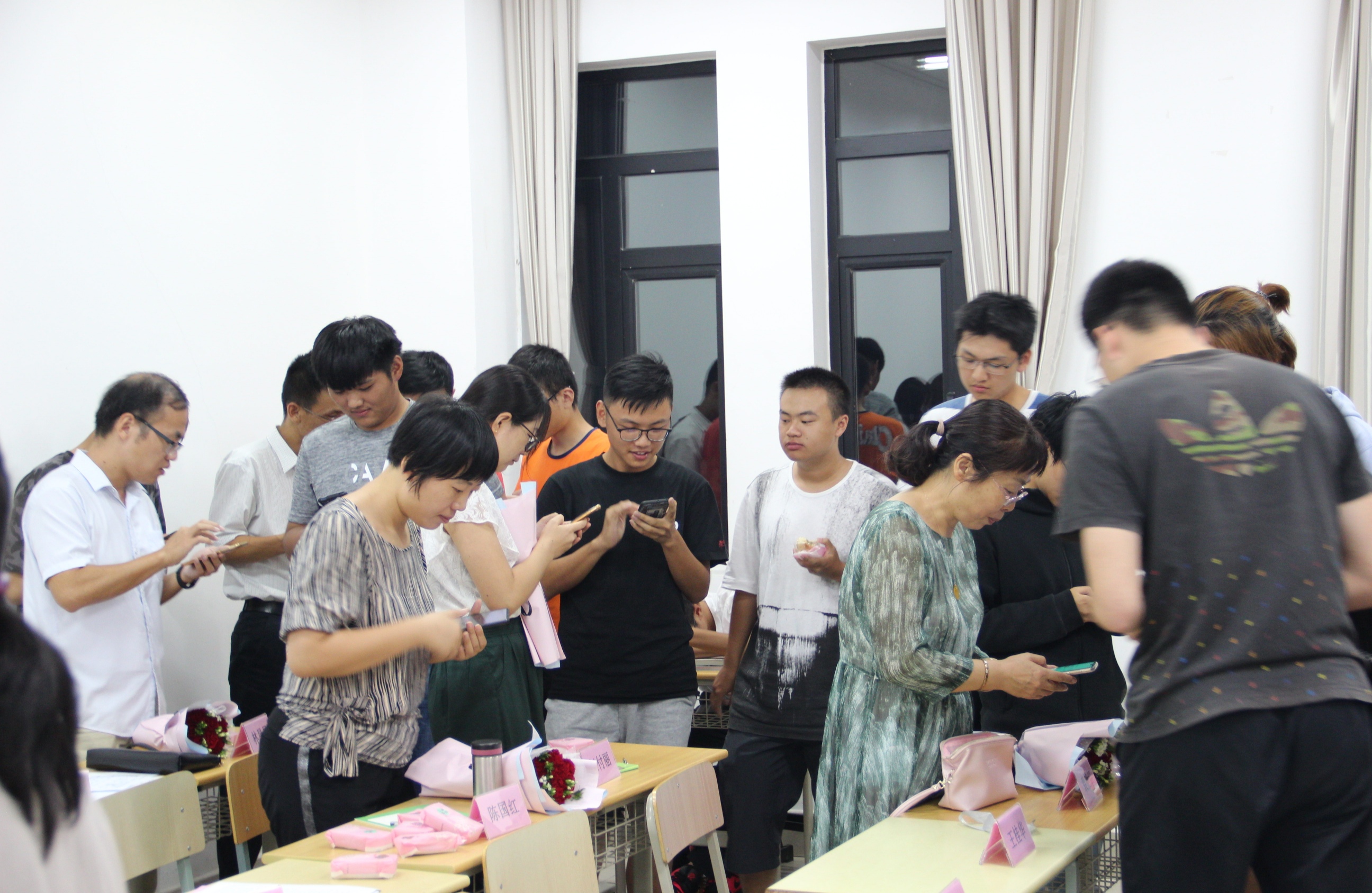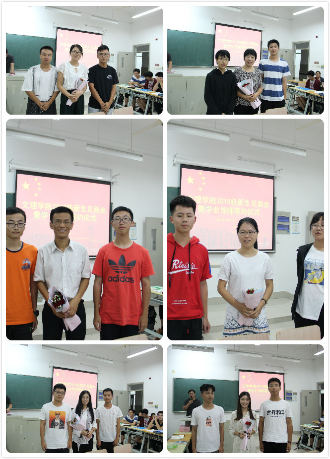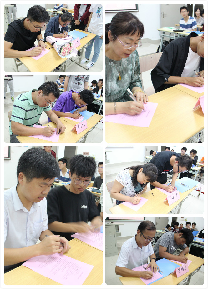 最后,进行了学生与学业导师的签约仪式。仪式上,12名导师分别与自己所带的2或3名学生进行了面对面签约;恰逢35个教师节之际,新生们还为自己的学业导师献花,表达了“尊师重道”的心意;签约仪式强化了师生间关系,明确了双方职责,加强了沟通交流与学业指导。