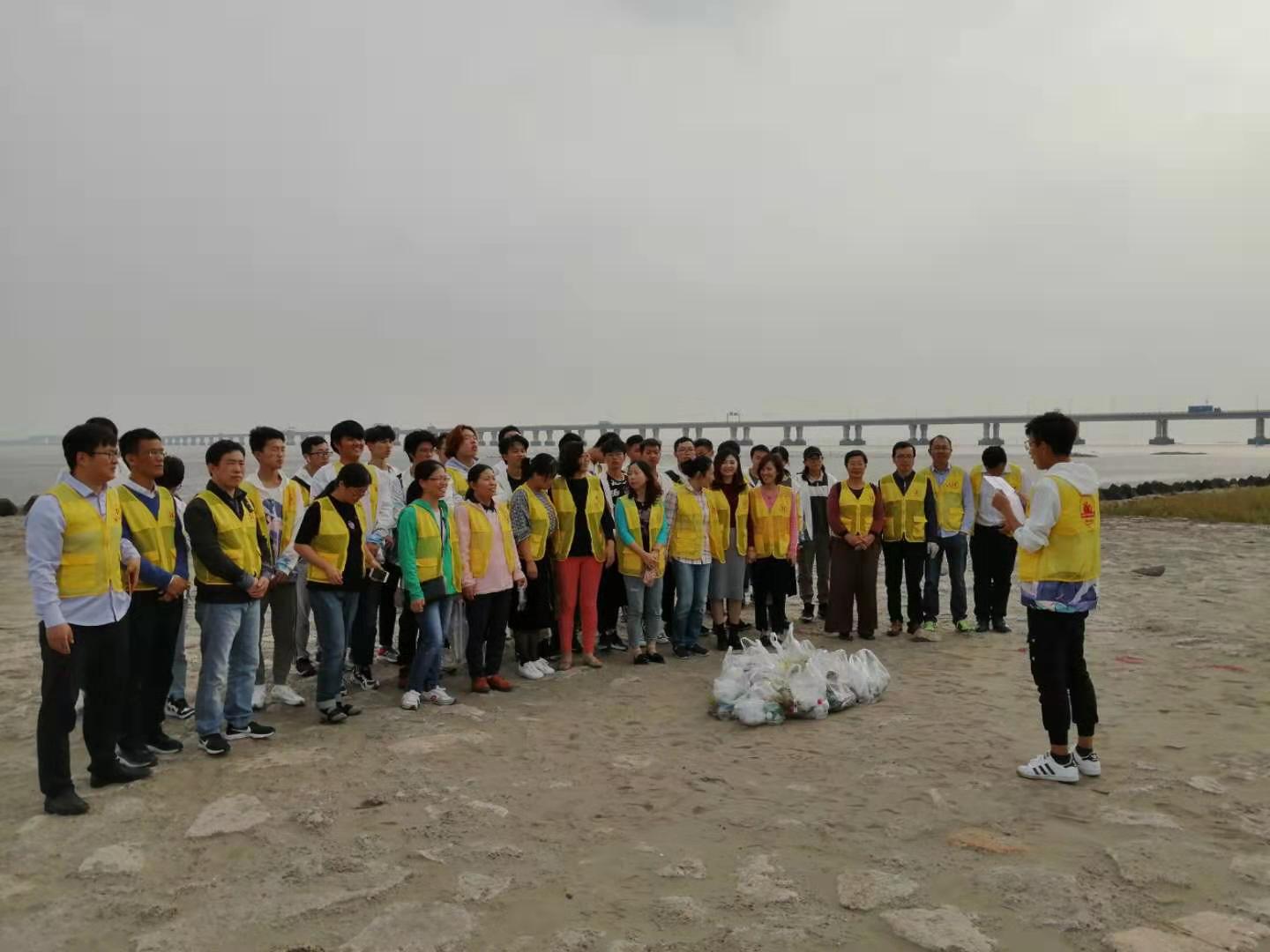 为深入开展“不忘初心、牢记使命”主题教育活动,10月25日下午,pp电子游戏平台官网组织全体党团员开展了以“清洁海滩,倡导生态文明”为主题的环保志愿服务活动,为党团员提供了一次主题教育的实践机会。党员和团员青年们来到南汇新城“天空之境”清理海滩上的垃圾,并发起“减少海洋垃圾,保护海洋环境,建设生态文明”的倡议书。