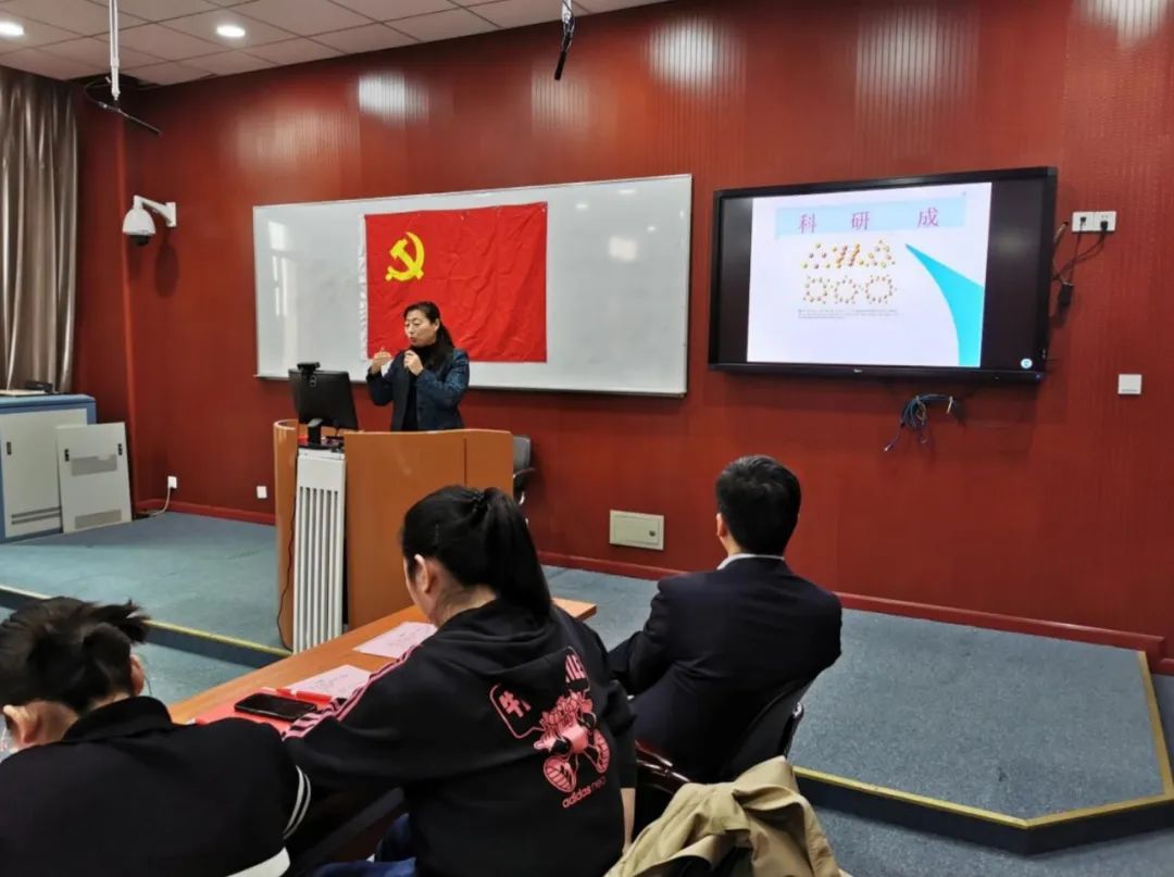 物理教研室教师代表赵润宁老师分享了自身的刻苦科研之路。她表示,习近平总书记在二十大报告中指出,教育、科技、人才是全面建设社会主义现代化国家的基础性、战略性支撑。必须坚持科技是第一生产力、人才是第一资源、创新是第一动力。作为高校教育工作者,更要肩负起科教兴国的使命,不忘初心,砥砺前行。