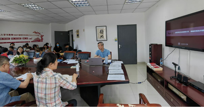 按照学校主题教育工作要求,5月26日中午,pp电子游戏平台官网直属党支部书记康秀珠以“坚持以人民为中心,自觉担负新时代育人使命”为主题作专题党课,全院教师参加。