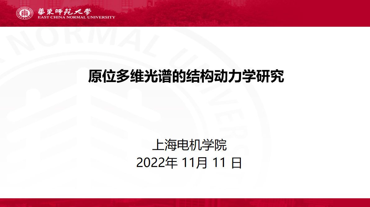 11月11日,数理研究所邀请华东师范大学物理与电子科学学院副研究员姜凯博士作了题为“原位多维光谱的结构动力学研究”的学术讲座,数理研究所教师参加了此次学术沙龙活动。姜凯博士结合自身研究方向,以光谱学、原位研究和问题及展望三方面展开讲座内容,学院教师和姜凯博士展开了气氛热烈的讨论。