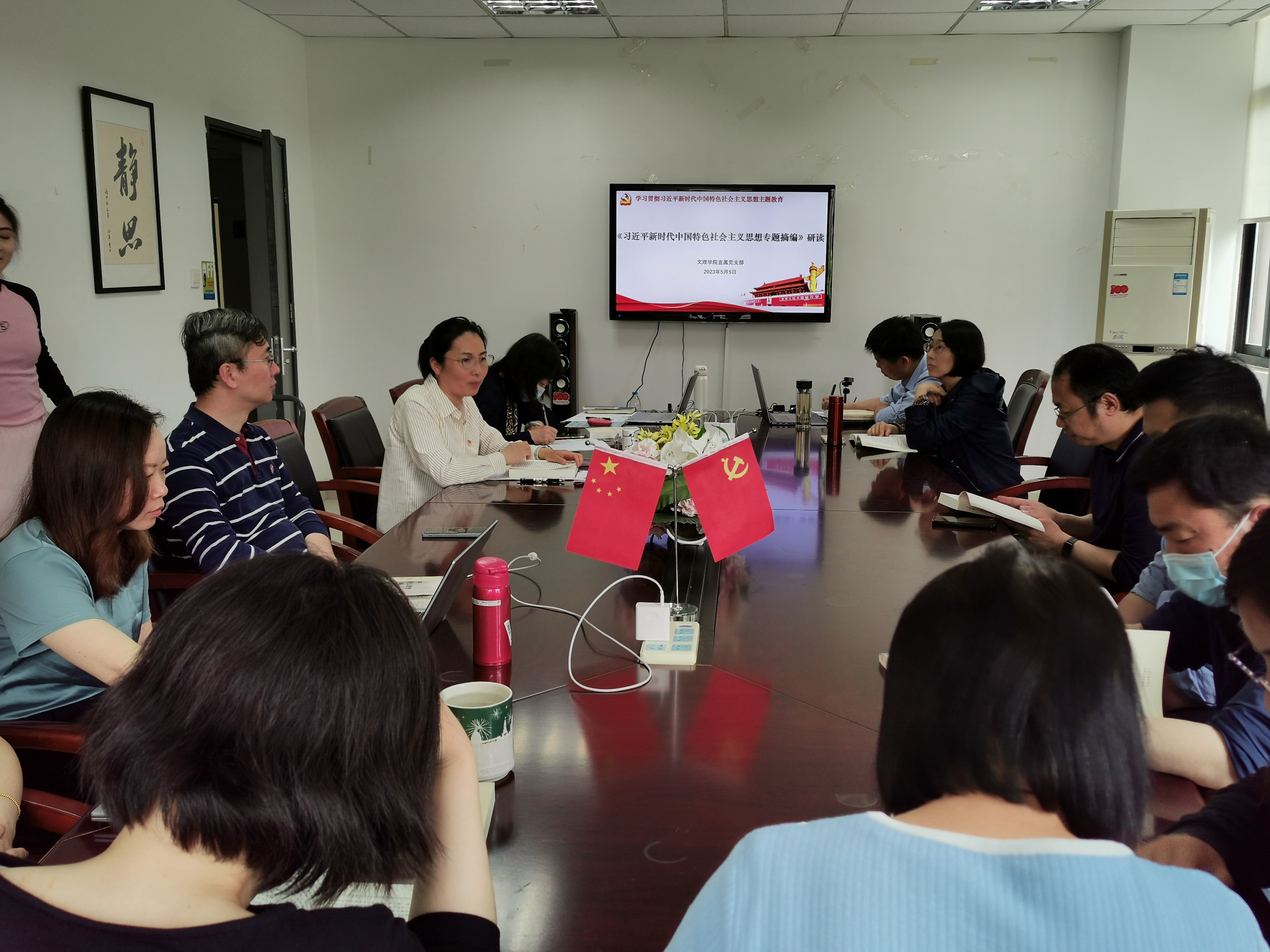 5月5日下午,pp电子游戏平台官网直属党支部组织全体党员开展学习贯彻习近平新时代中国特色社会主义思想主题教育。由直属党支部书记康秀珠领学《习近平新时代中国特色社会主义思想专题摘编》。