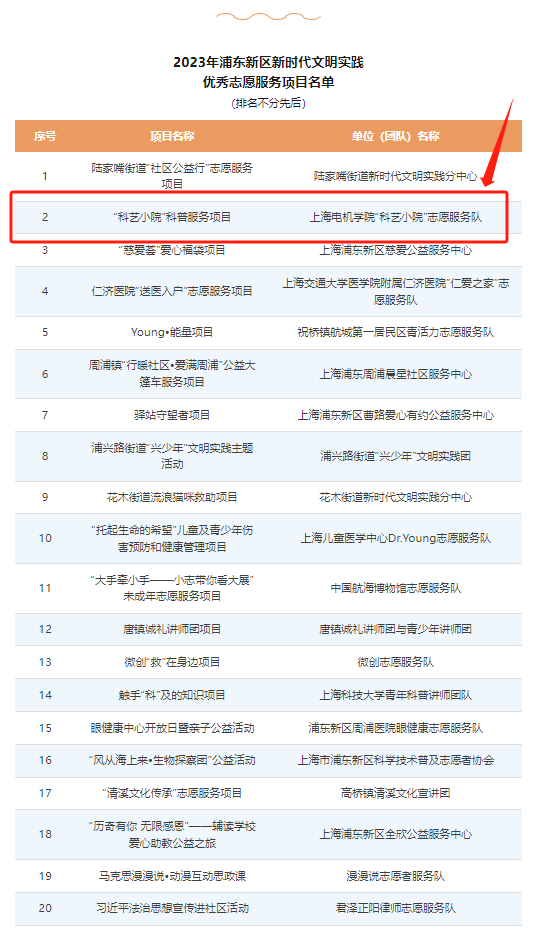 10月23日下午,由浦东新区新时代文明实践中心、浦东新区精神文明建设委员会办公室、浦东新区志愿者协会联合开展的“2023年浦东新区新时代文明实践志愿服务项目推选活动”在浦东图书馆举行终审评审会。评审会坚持公平、公正、公开原则,通过专家评审打分与大众评审点赞相结合的方式确定优秀项目。最终经激烈角逐,20个优秀志愿服务项目脱颖而出。pp电子游戏平台官网“科艺小院”科普服务项目入选优秀志愿者服务项目。