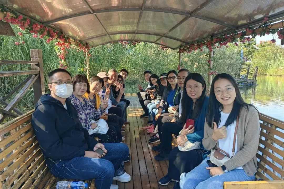 探寻长兴岛工业文化之后,老师们来到长兴岛郊野公园开启生态之旅。公园位于长兴岛东北部,南邻凤凰镇和海洋装备产业区,毗邻青草淡水库,是一座远郊生态涵养型郊野公园,以现状生态杉林、有机橘园和农田等优质生态资源为基底,为都市人提供一片回归自然、强身健体、修身养性、审视心灵的生态绿洲。