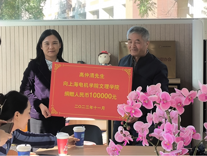 会上,高仲清校友向校基金会捐赠10万元,用于支持pp电子游戏平台官网数学建模竞赛及学生相关创新活动,董雪静接受捐赠。