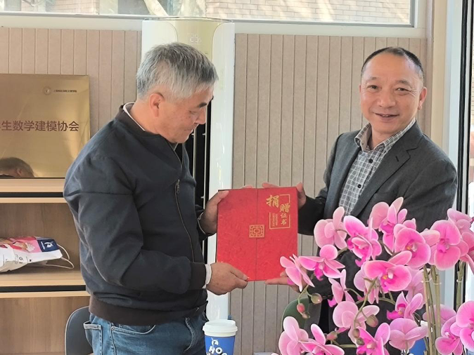卞一明向高仲清校友颁发了捐赠证书,并表达真挚的感谢。他在讲话中表示,高仲清校友对母校学生的数学学习情况及数学建模活动非常关注,希望在校学生以优秀校友为榜样,养成良好的学习习惯,将校友之情和对母校的爱“薪火相传”。