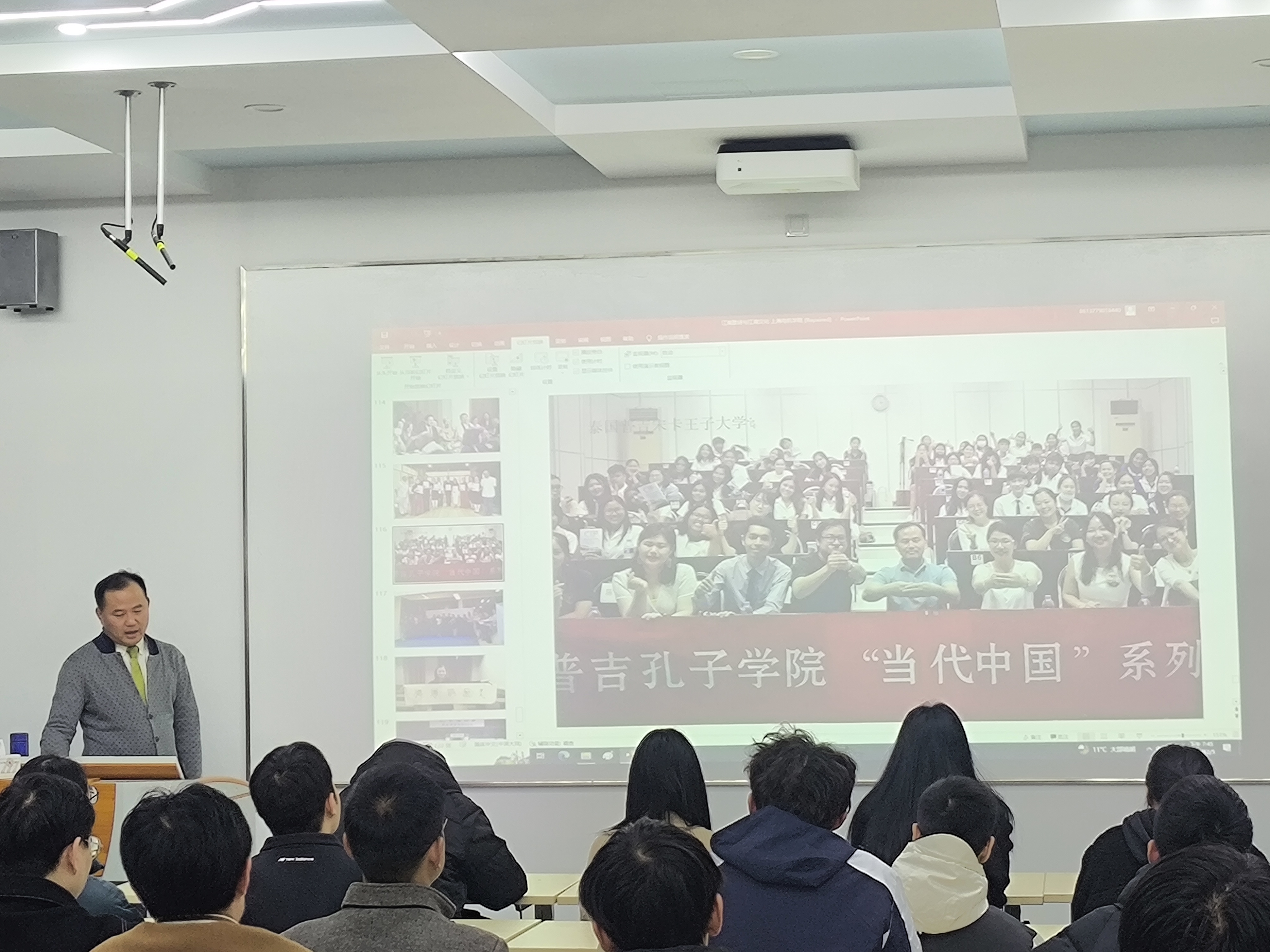 讲座最后,杨赛老师结合在东南亚、欧洲、北美洲等地区的歌诗实践,向同学们展示了中国文化的传播与影响,中国文化的美与浪漫早已走入世界各地的角角落落,讲述着中国故事、传播着中国声音。(供稿:pp电子游戏平台官网 王圆圆)
