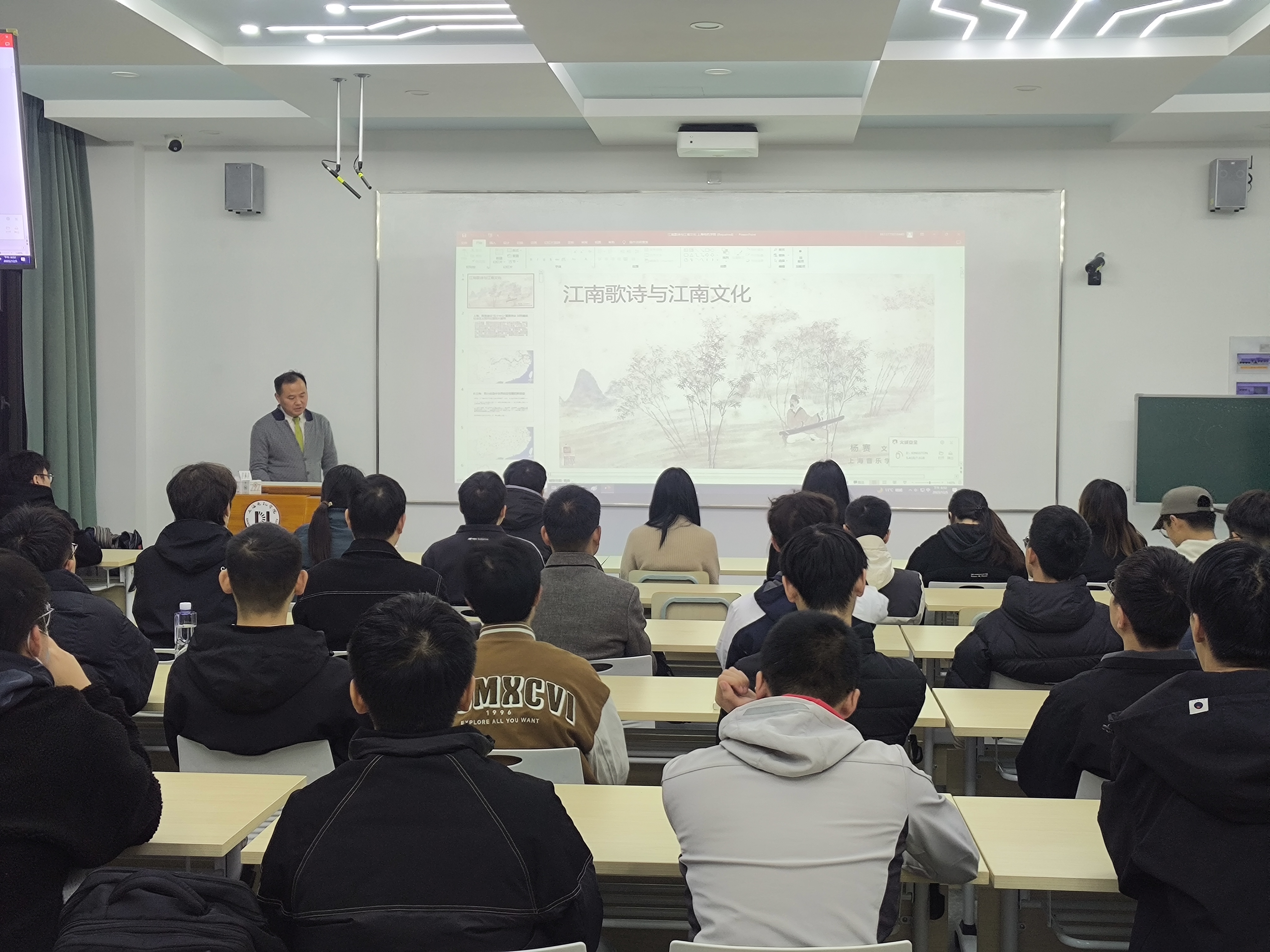 月河通识大讲堂”第六场讲座于125日开讲,邀请上海音乐学院研究员杨赛作《江南歌诗与江南文化》专题讲座。pp电子游戏平台官网直属党支部书记董雪静教授出席,近百位师生参加,讲座由pp电子游戏平台官网副院长吉文斌教授主持。讲座梳理了江南歌诗的发展与传播史脉,带领师生们深入了解江南文化与美学精神,展现中国式审美的高尚情趣。