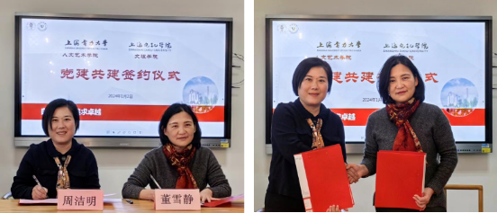 交流分享结束后,董雪静、周洁明代表双方党组织签订了党建共建协议书。接下来两家单位将根据各自党建工作特点、方向及布局,充分利用自身平台资源及优势,在制度建设、联组学习、党员教育、统战工作、文化交流及业务工作等方面开展多方位合作,努力形成互带互动、优势互补、资源共享的校际联动的基层党建工作新格局,共同提高党建工作质量水平。