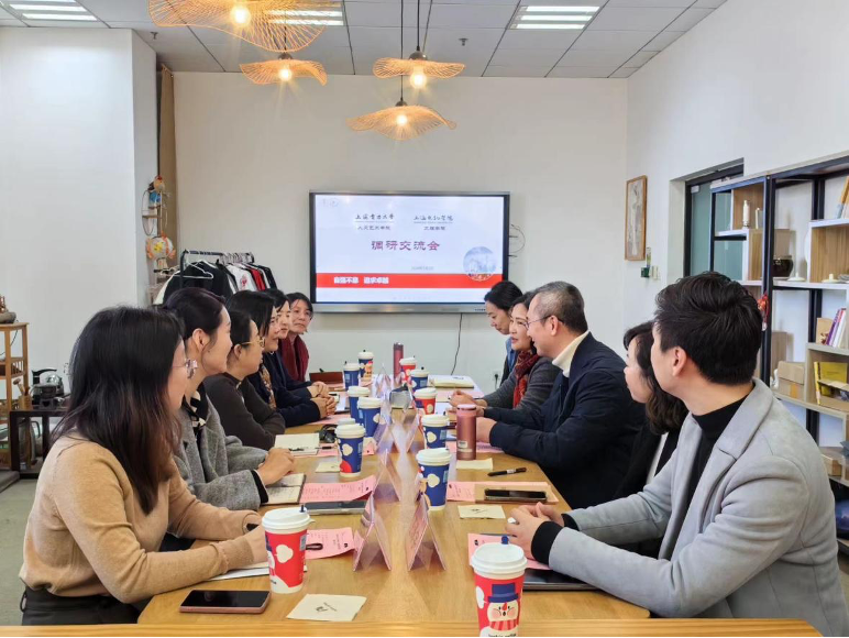 为加强临港新片区高校交流互鉴,协同推动基层党组织“一融双高”,1月2日,pp电子游戏平台官网直属党支部与上海电力大学人文艺术学院党总支开展结对共建活动。上海电力大学人文艺术学院党总支书记周洁明、副院长许晶,pp电子游戏平台官网直属党支部书记董雪静、副院长吉文斌,以及双方教师代表等参加活动。