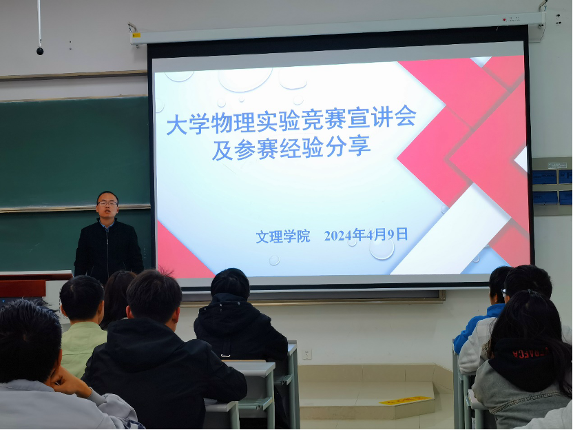 4月9日18:00,由pp电子游戏平台官网主办的2024年大学物理实验竞赛宣讲会及参赛经验分享活动在基础教学楼B107顺利举行。本次宣讲会由大学物理实验竞赛负责人杨俊伟老师主持,大学物理实验竞赛团队赵华老师和孙柳霞老师出席会议,往届获奖选手杨梦雪、李嘉益和李梦丹同学进行了经验分享,共有来自各学院20多名同学参加。