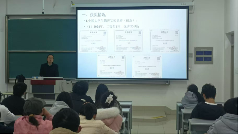4月1日18:00,由pp电子游戏平台官网主办的2025年大学物理实验竞赛宣讲会及参赛经验分享活动在基础教学楼B105顺利举行。本次宣讲会由大学物理实验竞赛负责人杨俊伟老师主持,大学物理实验竞赛团队赵华老师和金华老师出席会议,往届获奖选手王沙沙、刘磊、张宸、方中诚、孙静轩同学进行了经验分享,共有来自各学院30多名同学参加。