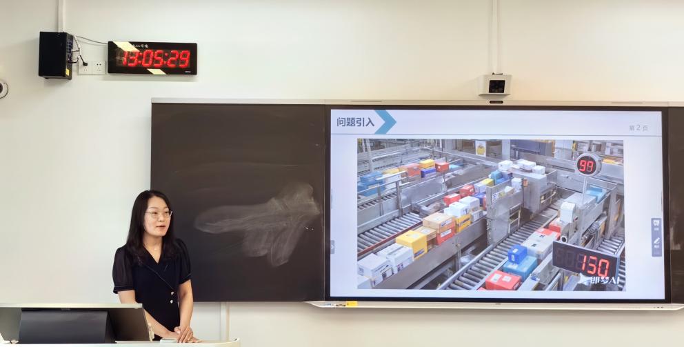 自然科学基础组曹楠老师讲授《工程数学1》中“导数的概念”。以网购快递分拣系统的视频引入、结合定义讲解和例题演示,展示导数求解过程。教学的引入环节使学生感受到数学的应用价值,激发了学习兴趣;同时,瞬时速度与切线斜率两个引例互补说明,帮助学生构建全面的认知框架。