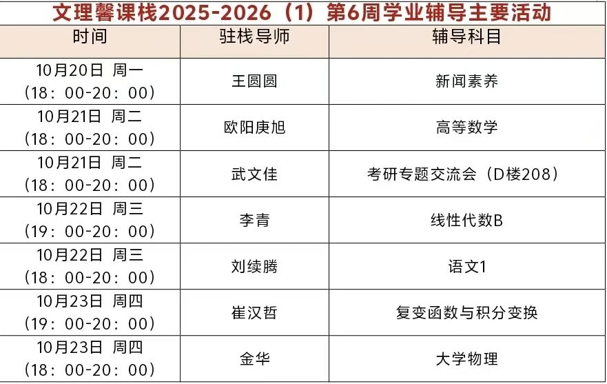 这里有数理老师带来的课外学业辅导、有文理教授带来的“教授茶座”和学术分享研讨、有“武文佳工作室”的师生工坊活动、有“SDJU数模协会”“春雪剧社”等的社团活动、有定期举办的“美育集市”、还有露台心灵氧吧……欢迎同学们常来文理馨课栈做客。
