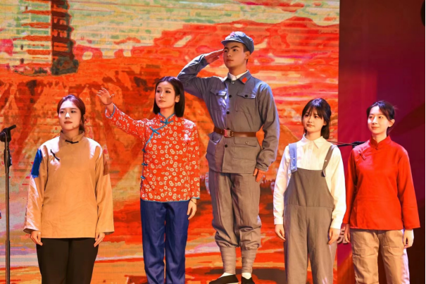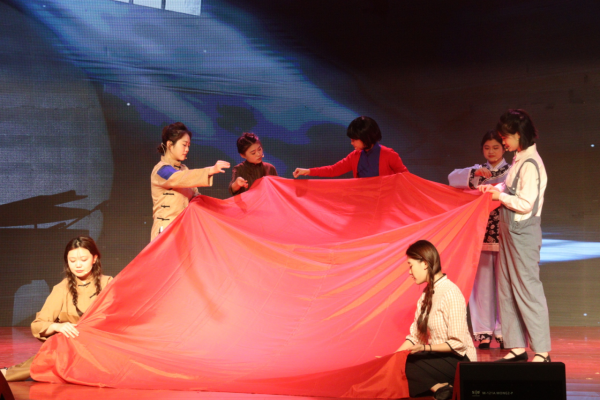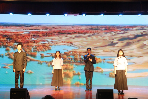 在艺术展演上篇中,男声独唱《这就是我的祖国》以声为赋、以音传情,带领观众与祖国同呼吸、与民族共命运、与时代共奋进;创意表演《葬花吟》艺术风格独特,赓续优秀传统文化;诗朗诵《以梦为马》带领观众感悟青春奋斗与积极乐观;红色歌剧片段《绣红旗》《我的爱人你可听见》《天边有颗闪亮的星》展现了革命者们对信仰和理想的坚定信念和不屈精神;大学生艺术团带来的现代舞《一荤一素》在丰富多变的节奏和绚丽多姿的舞蹈中将艺术展演的上半场推向高潮。