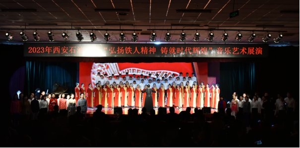 12月8日晚,由校团委、音乐系联合举办的“弘扬铁人精神 铸就时代辉煌”音乐艺术展演在鄠邑校区腾辉大学生活动中心举行。副校长张君涛,相关职能处室、院(系)负责人,鄠邑校区师生共计800余人观看了演出。