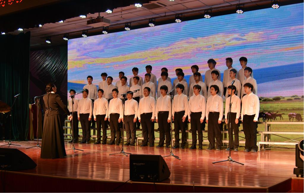 大合唱《欢乐的那达慕》《在灿烂阳光下》描绘了欢乐的草原节日场景,歌颂中国共产党的伟大历程和光辉业绩;艺术展演在全体演职人员一同合唱《领航》中迎来尾声,完美落幕。
