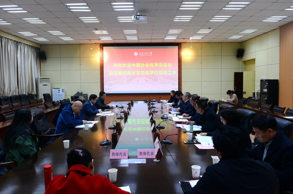 11月15日上午,中国社会科学杂志社副总编辑魏长宝一行来beat365调研,会议在雁塔校区会议中心第一会议室举行。校党委书记常江出席座谈会。副校长张荣军主持会议。