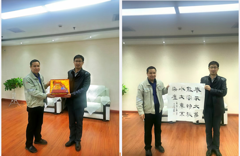 向西安热电厂赠送礼物和书法作品