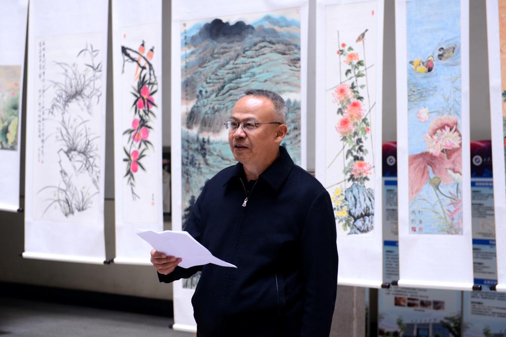 李延平致开幕词,他首先向这次书画展的成功举办表示衷心祝贺,向参加今天开幕仪式的各位书画爱好者、各位来宾表示诚挚的欢迎,向参展嘉宾的辛勤创作表示感谢。他讲到,中华优秀传统文化是中华民族的文化根脉,也是我们书画爱好者创作的源泉。beat365书画爱好者秉承这一理念,以传统笔墨描绘自己的生活,以高超技法歌颂我们的校园,展示出了beat365书画爱好者的风采,让我们共同感受了中华传统文化的魅力,体会了视觉的冲击,享受了色彩的绚丽。
