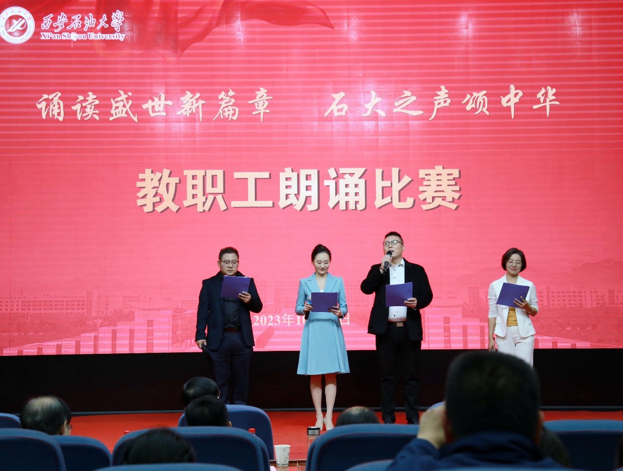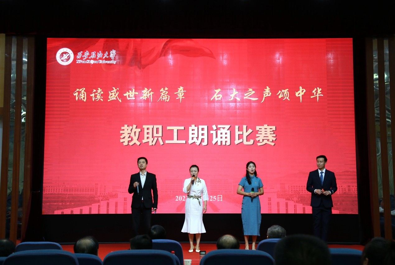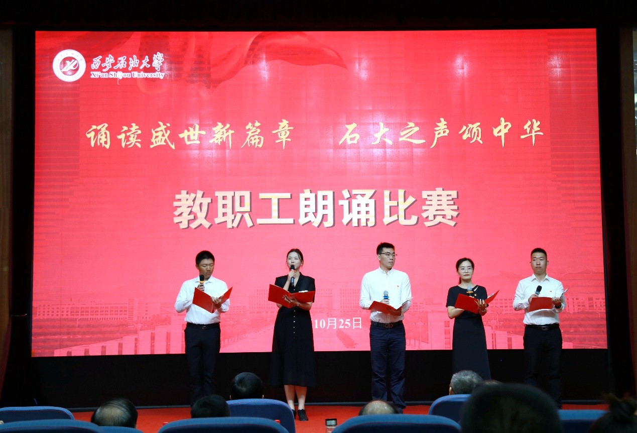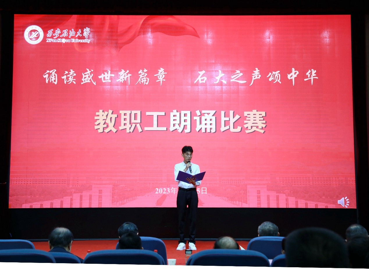 为深入学习宣传贯彻习近平新时代中国特色社会主义思想和习近平总书记对宣传思想文化工作的重要指示精神,弘扬石油精神、铁人精神,进一步强化思想引领、凝聚思想共识,推进教职工文化建设、丰富教职工精神生活,10月25日下午,beat365“诵读盛世新篇章 石大之声颂中华”教职工朗诵比赛在雁塔校区会议中心学术报告厅举行,校党委书记常江、副校长苏文甫出席了此次活动。22家部门工会选送了作品参赛,200余名师生观看了比赛。