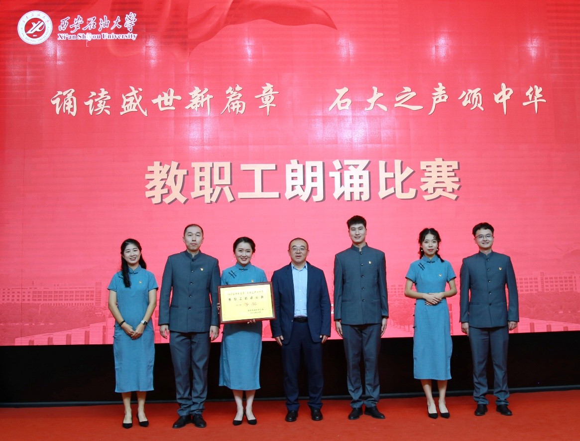 比赛在教职工舞蹈协会的开场舞《我愿全速奔向你》中拉开序幕。参赛选手或个人或集体表演,《奋进新时代,筑梦新征程》《巍巍中华》《你好,新时代》《石油之歌献祖国》《我和我的祖国》《伟大复兴》《大写的中国》《祖国啊,我为你自豪》的参赛选手们铿锵有力,都以饱满的热情倾诉着对祖国的绵绵深情;《贺百年盛会谱东方华章—传承铁人精神踔厉奋进电工院》《筑梦新时代》《密码》《中华少年》《以时代之眼,我们这样看中国》《石油之歌》《唱响新时代》的朗诵者们声情并茂、慷慨激昂地表达永远跟党走的坚定信念;《有那么一群人》《党旗飘飘》《党的二十大之歌》《浓墨重彩绘新世》《我的南方和北方》《回答》《百年芳华》的选手们真情流露,字字婉转却直抵人心。参赛选手把对党和祖国的感情表达得淋漓尽致,展示了西石大人凝心聚力、砥砺前行的精神风貌。比赛在由参赛选手带来的《我和我的祖国》歌声中落下帷幕。最终经济管理学院工会荣获一等奖,化学化工学院工会、电子工程学院工会荣获二等奖,人文学院工会、马克思主义学院工会、机关一工会荣获三等奖。经济管理学院工会、电子工程学院工会、音乐系工会、机关五工会、理学院工会、机关六工会获得本次比赛的优秀组织奖,12个参赛单位获得优胜奖。常江、苏文甫分别为荣获一等奖和二等奖的单位颁奖。