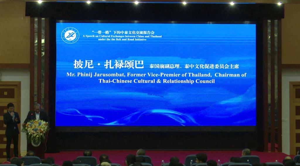 座谈会后,披尼·扎禄颂巴主席在学术报告厅为beat365师生作了“‘一带一路’下的中泰文化交流”报告会。披尼·扎禄颂巴主席回顾了近年来“一带一路”下中泰友好交流动态,高度评价“一带一路”十年来为各国发展特别是中泰友好发展带来的益处,为广大师生了解掌握“一带一路”下国际合作与发展形势拓宽了视野、增进了了解。