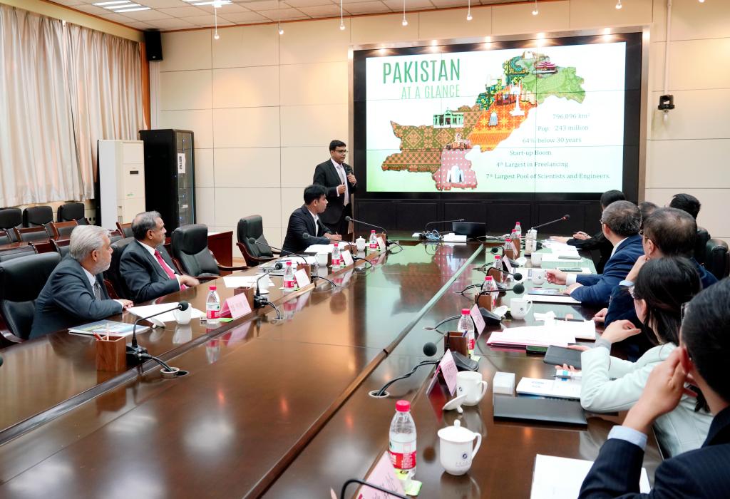 常江对布哈里一行来访表示热烈欢迎,并简要介绍了学校发展历史与办学特色。他表示,巴基斯坦是习近平主席提出的共建“一带一路”倡议最早参与国之一。巴基斯坦国立科技大学是巴基斯坦顶尖研究型大学。围绕“一带一路”倡议及中巴两国合作,学校希望发挥自身特色,与巴基斯坦国立科技大学在能源研究、信息技术、基础建设等领域开启新合作。