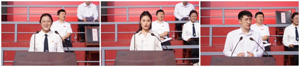电子工程学院2023级高怡然同学代表全体本科新生发言,石油工程学院2023级博士研究生杨静雯同学代表全体研究生新生发言,地球科学与工程学院2021级硕士研究生王俊杰同学代表全体在校学生发言。