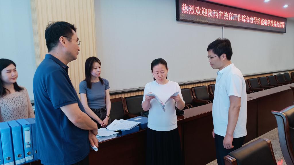 为全面贯彻落实习近平总书记关于教育的重要指示精神和2023年全省教育工作会议精神,深化学习贯彻习近平新时代中国特色社会主义思想主题教育成果,切实抓好党中央、国务院和省委、省政府相关教育政策及决策部署落地,高位推进委厅年度重点工作,9月1日上午,陕西省教育工作综合督导高校第二组组长、省教育厅二级巡视员孙全学一行7人来学校开展2023年教育工作综合督导。副校长苏文甫、程永清出席汇报会并陪同督导检查。