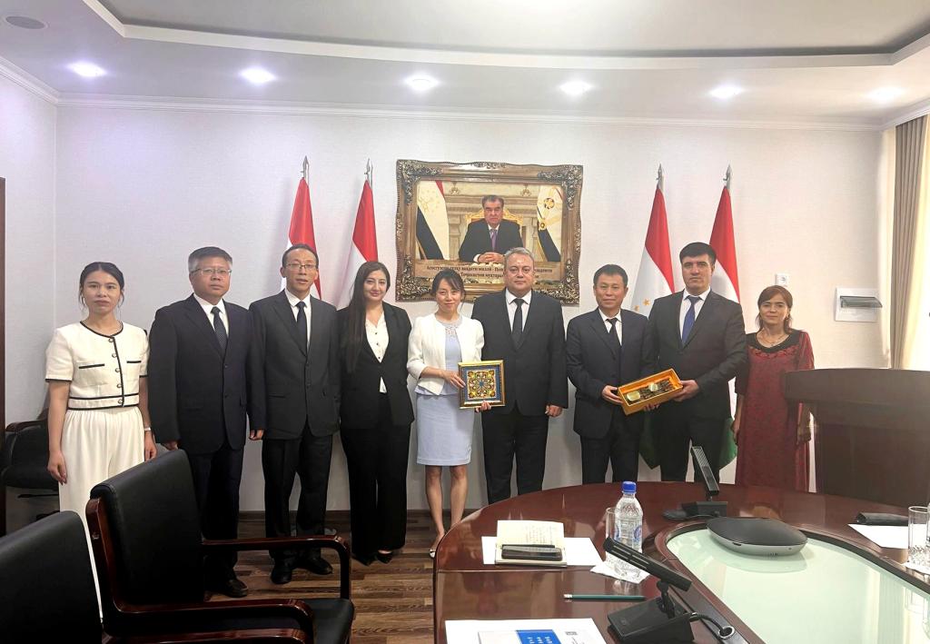 拜访塔吉克斯坦教科部,受到塔吉克斯坦教科部第一副部长朱奈德·贾姆希德·哈比布洛(右四)的接待