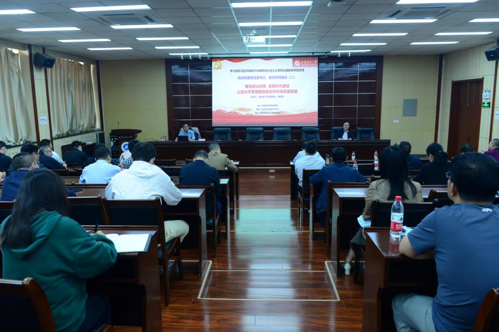 5月22日下午,副校长程永清在雁塔校区会议中心第五会议室讲授了题为《锤炼政治品格 加强作风建设 以高水平管理服务推动学校高质量发展》的学习贯彻习近平新时代中国特色社会主义思想主题教育专题党课。机关党委所属各党支部委员、各党总支委员、党委委员共100余人聆听了党课。此次专题党课由机关党委书记吴复雷主持。