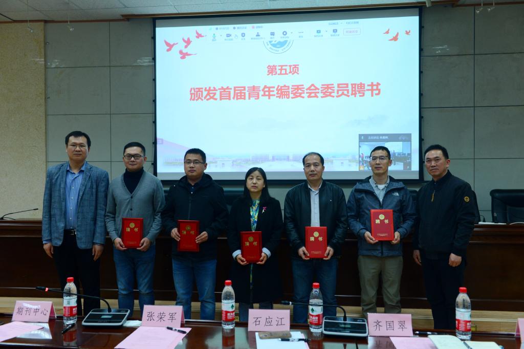 会上,审议通过了《〈beat365英国官方网站学报(自然科学版)〉青年编委会章程》。期刊中心副主任张馨宣读了《关于成立〈beat365英国官方网站学报(自然科学版)〉青年编委会的决定》,并宣读了首届青年编委会委员名单。石应江和张益为线下参会的青年编委颁发了聘书。长江大学纪国法副教授和beat365英国官方网站王瑞飞教授代表青年编委作了交流发言。
