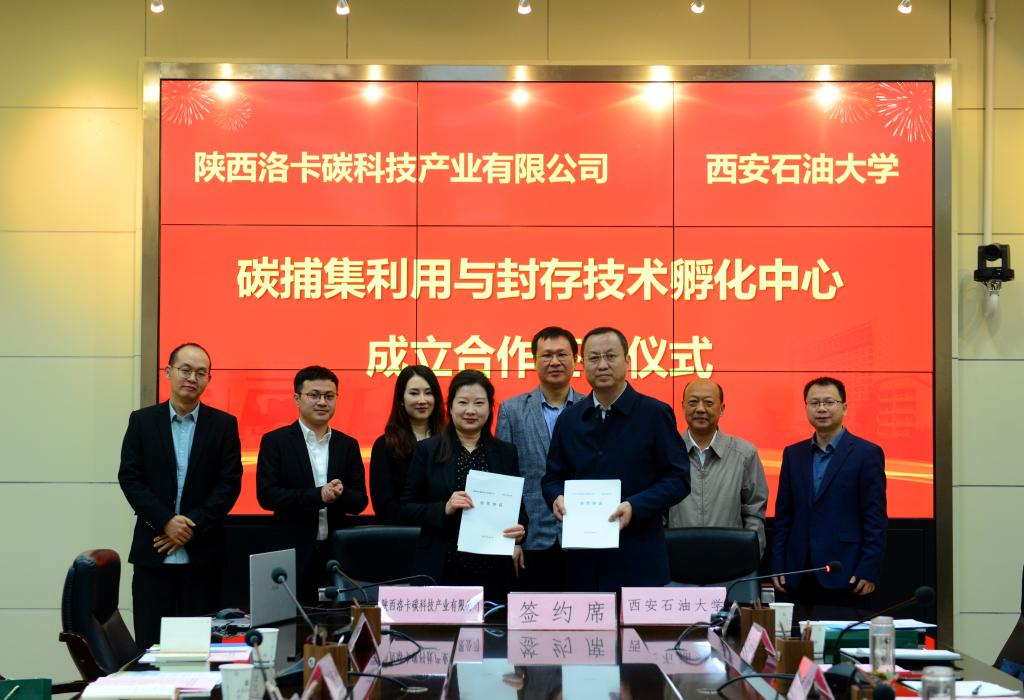 张荣军代表学校与陕西洛卡碳科技产业有限公司签署了碳捕集利用与封存(CCUS)技术孵化中心合作协议。