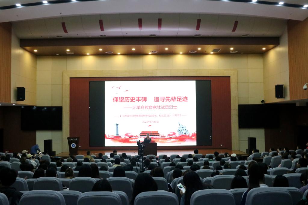 5月10日下午,由校团委主办的第七十七期明德大讲堂在鄠邑校区弘石学术报告厅举行。陕西省杜斌丞教育思想研究会会长、杜斌丞烈士之孙杜芳滨应邀作了题为《仰望历史丰碑 追寻先辈足迹——记革命教育家杜斌丞烈士》的讲座,400余名师生现场聆听报告。