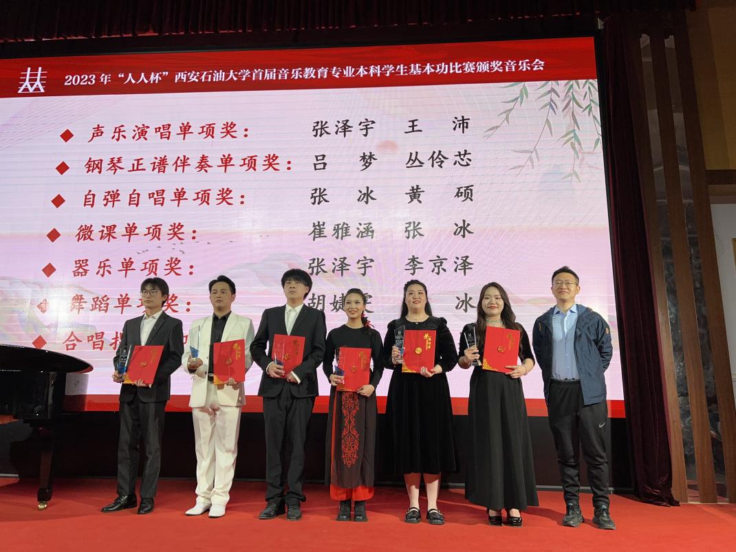 4月18日晚,由实验室管理处主办,音乐系承办的首届“人人杯”音乐教育专业本科学生基本功比赛颁奖晚会在雁塔校区会议中心学术报告厅举行。beat365副校长程永清出席晚会并为个人全能一等奖获得者颁奖,咸阳师范学院音乐学院院长王勇华,渭南师范学院音乐学院教师代表,学校相关职能部门负责人,音乐系负责人和全体师生共300余人参加了颁奖晚会。