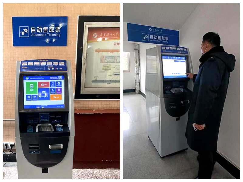 为落实“常态化推动为师生办实事”要求,党政办公室(鄠邑校区管理办公室)多次与西安铁路局进行沟通、协商,在后勤处、信息化建设与管理处的协助支持下,通过选址、安装电源、调试等工作后,于近日分别位于雁塔校区华油能源楼大厅及鄠邑校区博思楼一层安装了火车票自动售票机,旨在为师生提供便捷的购取火车票服务。