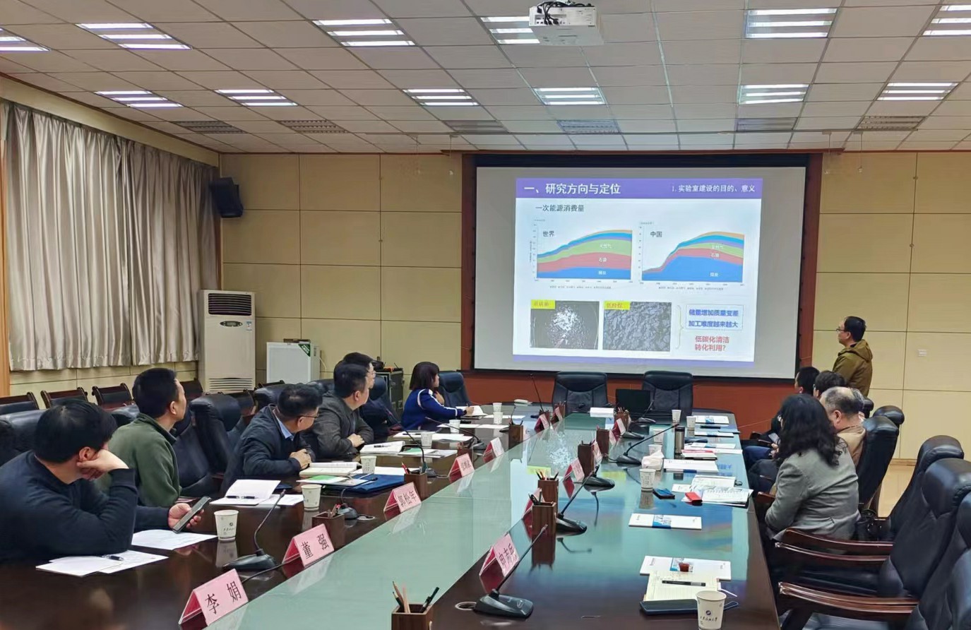 化学化工学院院长王文珍从学科建设、教学情况,师资概况、实验平台、科研工作、学生工作及对外交流合作方面介绍了化学化工学院的情况。化学工程系副主任申志兵介绍了“西安市高碳资源低碳化利用重点实验室”申报的情况。司马文龙围绕实习基地建设对学院的学生就业工作进行了介绍。