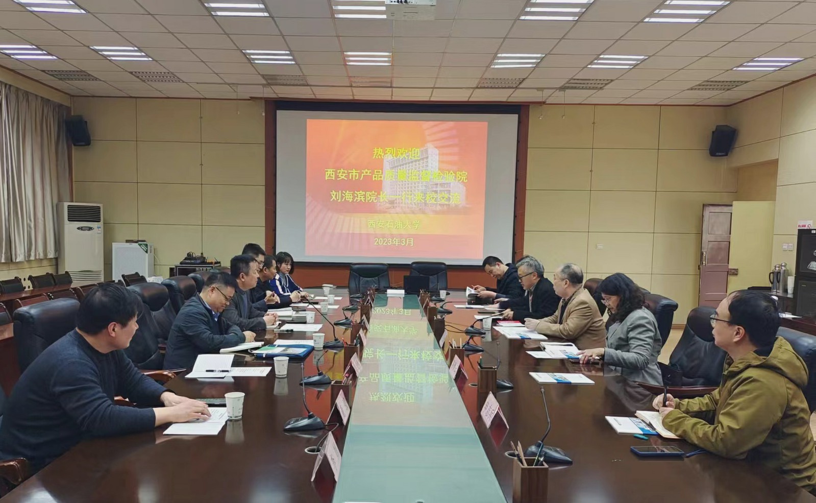 刘海滨对学校的热情接待表示感谢,并从基本情况、环境设施与仪器设备、检验资质和能力、科研水平、交流合作、获奖情况等方面介绍了西安市质量监督检验院的相关情况。