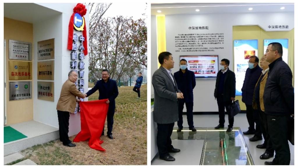 随后,陈军斌一行赴泾阳临空科创园参观浅层地热能利用示范项目,并与马思锦共同为beat365英国官方网站实践教学基地揭牌。沈春强详细介绍了项目投资、实施情况、资源分布储量以及项目开发前景等。