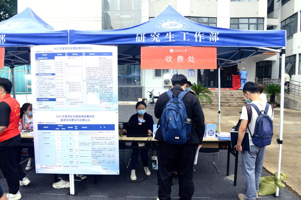 学校对新生入学和疫情防控工作高度重视,召开专题会议安排部署相关工作,校党委书记赛云秀、校长李天太等党政领导多次亲临现场看望2022级新生并慰问迎新工作人员。迎新期间,学校专门设立绿色通道服务站,确保2022级家庭经济存在困难的学生全部顺利入学。同时在雁塔、明德校区设立目的地付费处,为符合报销条件的新生报销打车费。机关党委慰问鄠邑校区174位一线工作人员,共发放180箱牛奶、850个面包、70箱方便面和70箱火腿肠。后勤处坚守在交通场站、被褥发放点和免费服务点,严格按照疫情防控要求开展工作。保卫处负责扫码测温、查验“两码”和入校审批手续、行李消杀、交通秩序维护等工作,全力为新生入校“第一关”保驾护航。财务处负责新生学费收缴、政策咨询、校园一卡通预充值等工作,通过微信公众号和“校园安心付”APP等方式开展缴费,简便快捷。校医院有序开展核酸检测和新生体检工作,确保师生健康安全。