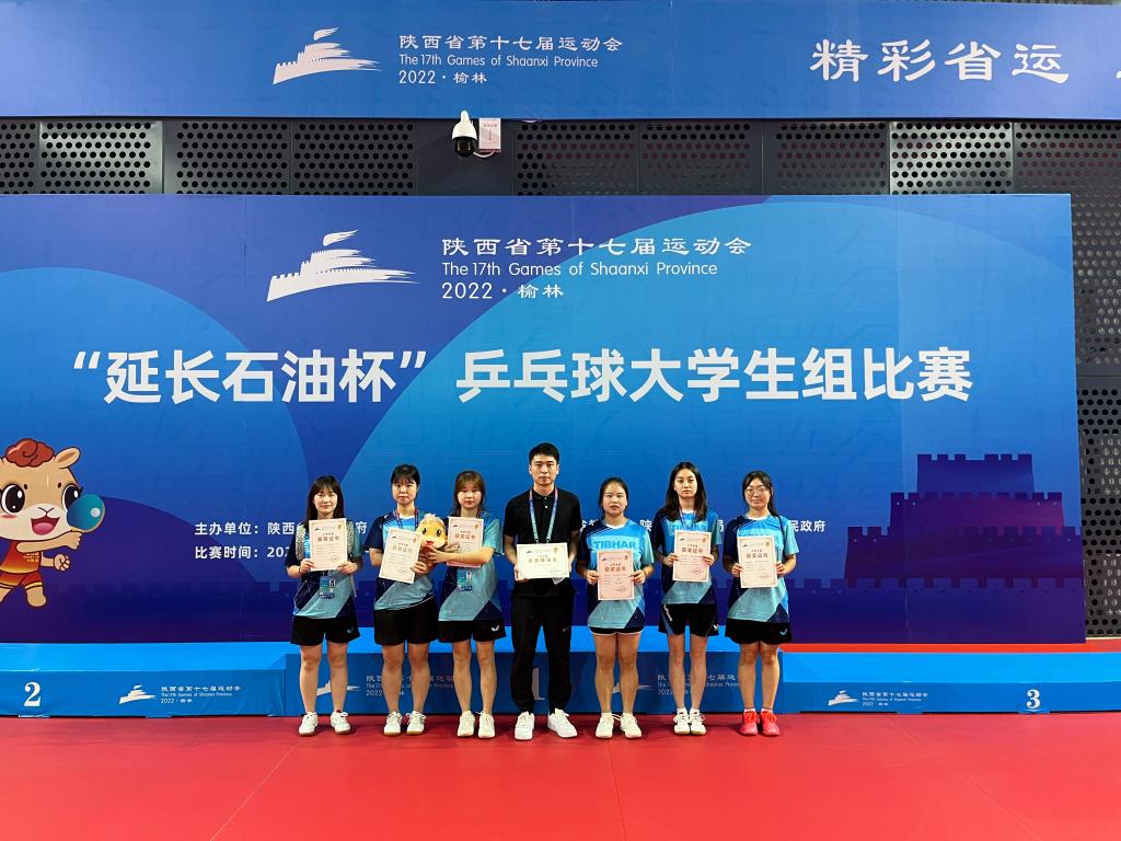 近日,陕西省第十七届运动会乒乓球项目大学生组比赛落下帷幕,beat365女子乒乓球队经过激烈角逐,最终获得女子甲组(阳光组)第四名的好成绩。