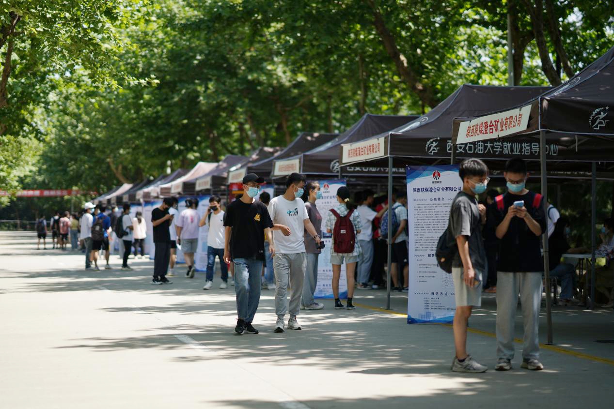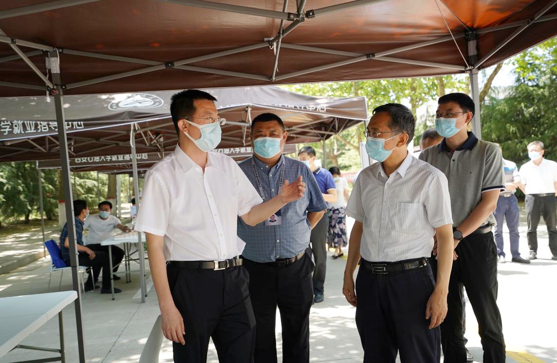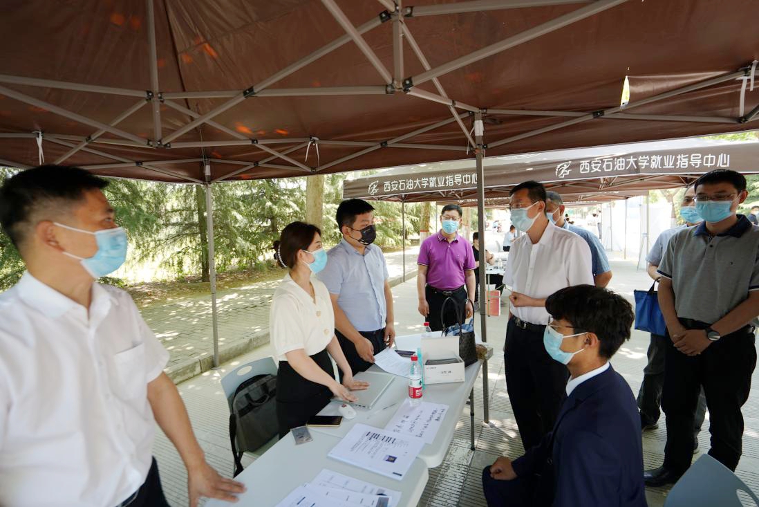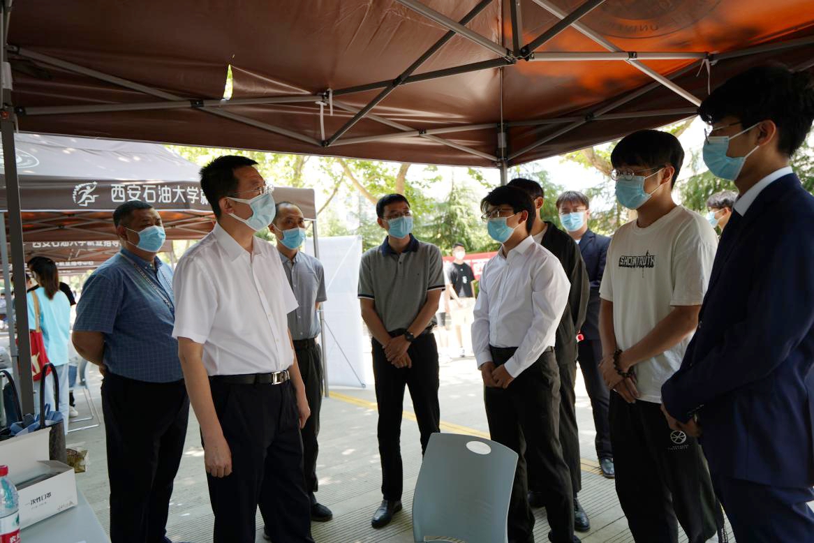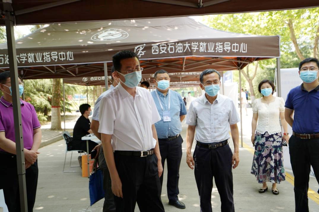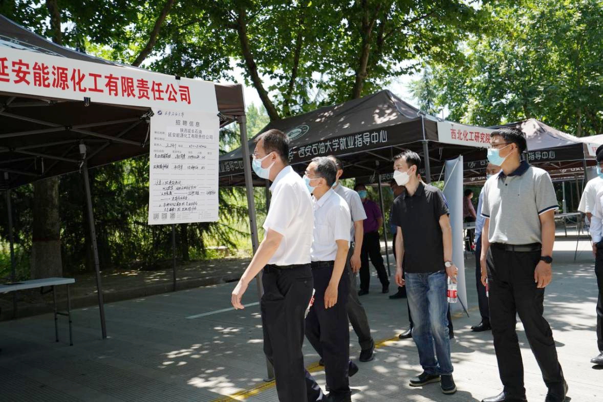 6月1日上午,由陕西省人力资源和社会保障厅、陕西省国有资产监督管理委员会、陕西广电融媒体集团主办,陕西省人才交流服务中心、beat365英国官方网站承办的“公共就业服务进校园——省属国企稳就业高校毕业生专项招聘会”在beat365鄠邑校区举行,陕西延长石油集团、陕煤彬长煤矿、西北有色集团713总队有限公司等18家省内重点企业参会。陕西省人力资源和社会保障厅副厅长井海滨、就业促进处处长王晓龙、陕西省人才交流服务中心毕业生部部长李阳莅临现场视察指导工作。校党委副书记张木、相关职能部门负责同志现场陪同。