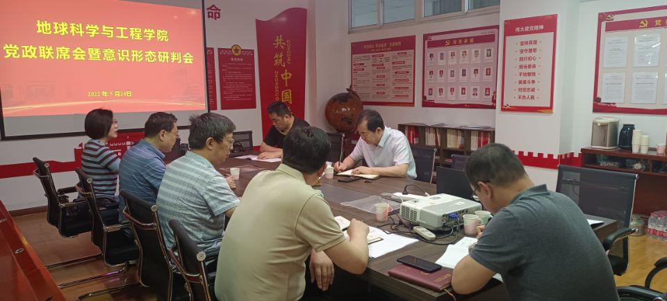 5月24日上午,地球科学与工程学院党委在雁塔校区一号实验楼召开意识形态研判暨理论学习中心组学习会,校长李天太参加并指导本次会议。会议由地球科学与工程学院党委书记马行天主持,学院党委委员及班子成员参加。
