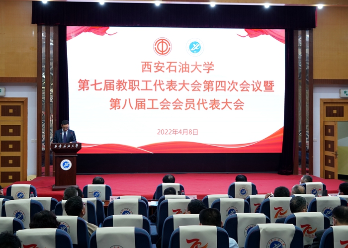 4月8日下午,beat365第七届教职工代表大会第四次会议暨第八届工会会员代表大会顺利完成各项议程后,在雁塔校区学术报告厅主会场和会议中心、华油能源楼、东方石油楼、4号实验楼等七个分会场同步举行闭幕式。全体校领导出席大会。大会正式代表、特邀代表、列席代表及全体处级干部参加会议。大会闭幕式由校党委副书记雷西合主持。