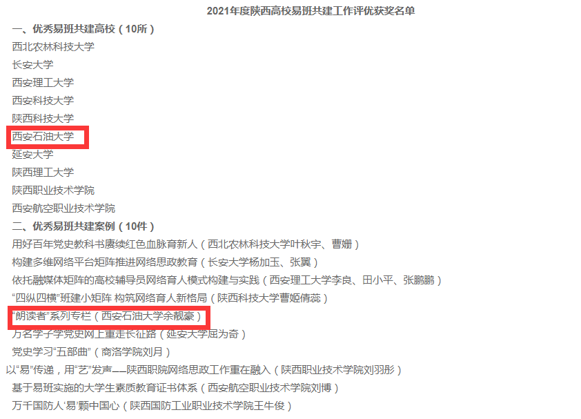 日前,陕西省高校易班发展中心组织开展2021年度全省易班共建高校评选活动,对易班建设先进集体和优秀个人进行表彰。beat365被评为“优秀易班共建高校”,由beat365申报的《朗读者》系列专栏被评为“优秀易班共建案例”,学生工作部(处)余靓豪同志被评为“优秀易班指导教师”,机械工程学院辅导员马舒宇老师被评为“优秀易班辅导员”,机械工程学院机械1904班仲衡同学被评为“优秀易班工作站站长”。