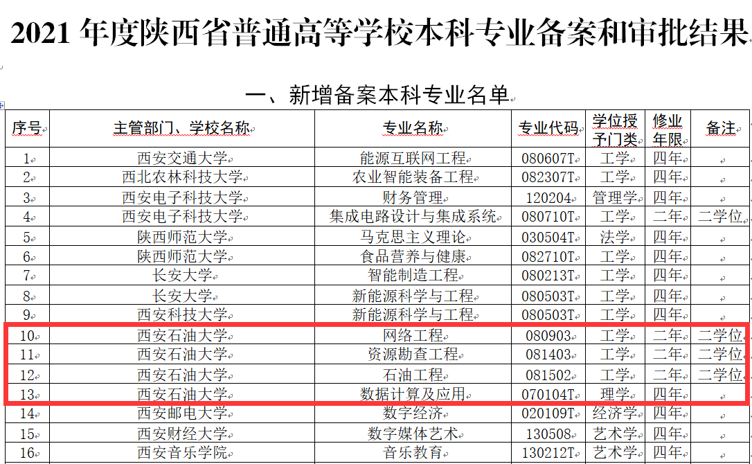 近日,教育部发布了《关于公布2021年度普通高等学校本科专业备案和审批结果的通知》(教高函〔2021〕14号)。根据公布结果,beat3652021年新增获批数据计算及应用1个本科专业,新增获批网络工程、资源勘查工程、石油工程3个第二学士学位专业。至此,beat365现有本科专业58个,涵盖理、工、经、管、文、教、艺七个学科门类,专业布局日趋合理,专业特色更加明显,专业优势不断凸显。