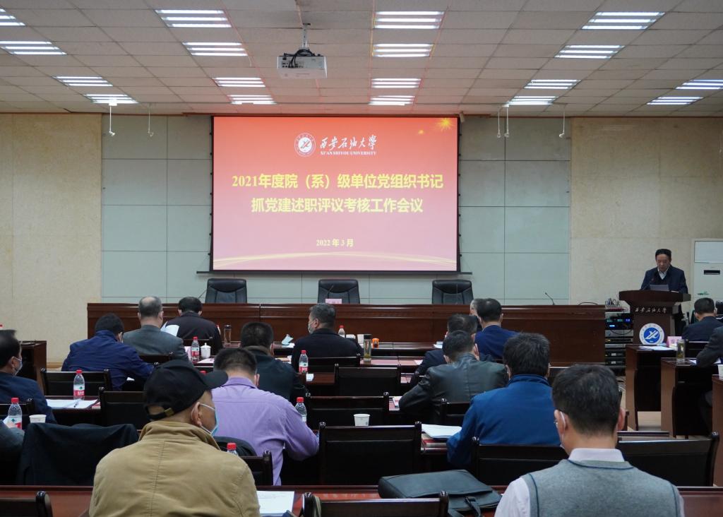 3月7日下午,学校2021年度院(系)级单位党组织书记抓党建述职评议考核工作会议在雁塔校区第二、三会议室召开。全体校领导出席会议,校党委书记赛云秀主持会议并讲话。