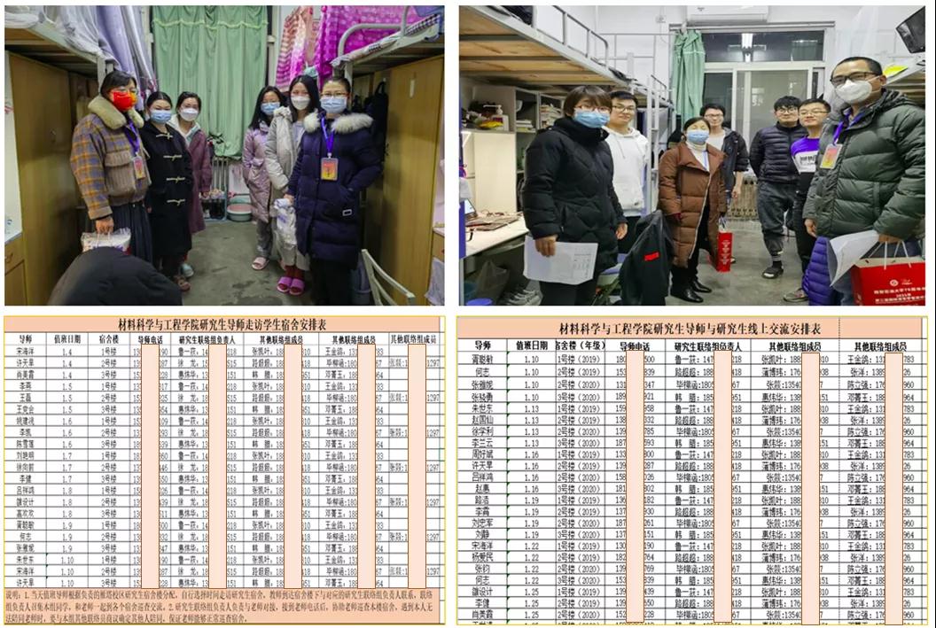 为稳步推进疫情防控期间研究生教育教学工作,材料科学与工程学院院长张骁勇,党委副书记张云姿,学生工作办公室主任、鄠邑校区研究生线下辅导员马武军等,及时深入学生宿舍检查调研研究生线上听课情况。